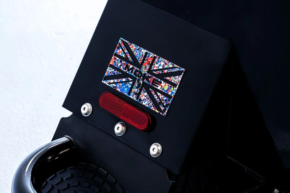 As you can see, he has paid homage to the brand’s 1960s British roots – the main artwork resembles the union jack and the wording ‘nineteen 64’ is on the bonnet, representing the date the first MOKE was produced. LP Edits is also created the MOKE lettering and a visual on the back. Last but not least, a darkened front grille focus the eyes on the amazing artwork.
